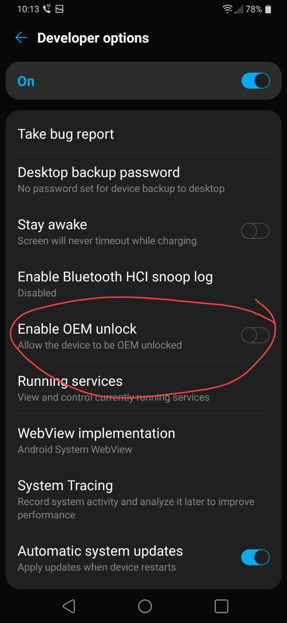 Even if the user does a factory reset, it stays unlocked until the setting is manually altered again by going into the developer options section. To unhide it, follow the below steps: Once you have enabled it, it stays on. Now to enable oem in samsung or any android mobile phone follow below steps to unlock oem. Unlocking the bootloader wipes all the data on the phone. Oem unlocking on android is an option in the device's developer options settings that needs to be enabled in order to unlock the bootloader. Scroll down and will see oem unlock. Jul 04, 2021 · once you enable the oem unlock on your device, the "unlock ability" flag is set to 1, which will allow users to use the "fastboot flashing unlock" command. It was first introduced by google in android 5.0 lollipop and is also sometimes referred to as "oem unlock". Allow developer option to enable oem unlock. The simple function of the oem unlock tab in the developer options menu is to allow running of the command "fastboot flashing unlock". Oem unlock means to unlock the bootloader of the device. Jul 25, 2020 · the option to enable oem unlock is hidden under developer options of the device.